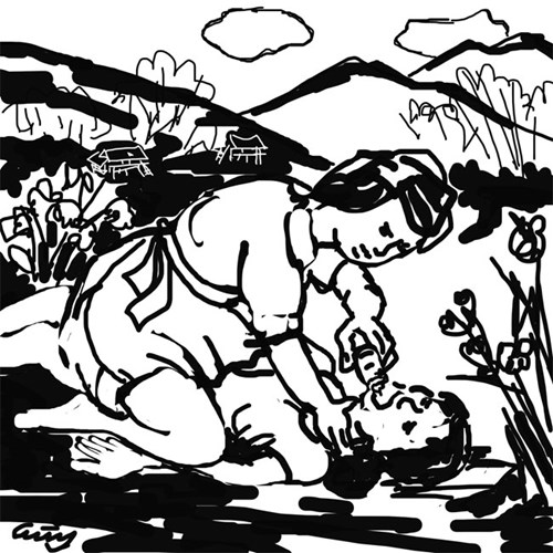 Chị May bị bất ngờ nên hoảng hốt, ngỡ ngàng, lát sau mới lập cập bò lên tảng đá ngồi, mắt nhìn tôi len lén sợ sệt, cúi mặt không nói gì. Tôi ngồi thụp xuống cạnh chị hạ giọng trong uất nghẹn: