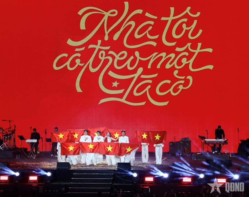 | Nhóm DTAP biểu diễn ca khúc “Nhà tôi có treo một lá cờ”. |