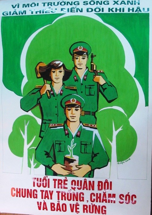 Tác phẩm "Tuổi trẻ quân đội chung tay trồng, chăm sóc và bảo vệ rừng" tác giả Đào Đức Lộc, Trường Đại học Văn hóa Nghệ thuật quân đội.