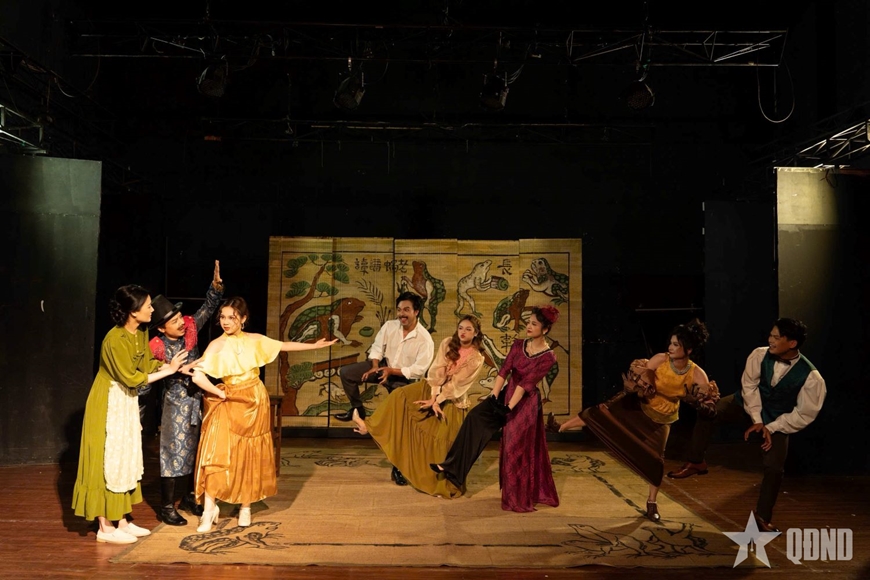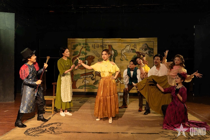 Một cảnh trong vở kịch Pygmalion do diễn viên Trường Đại học Sân khấu Điện ảnh Hà Nội biểu diễn.