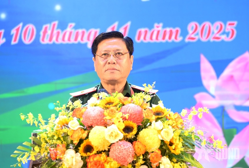 Thiếu tướng Huỳnh Văn Ngon, Phó chính ủy Quân khu 9 phát biểu khai mạc liên hoan.