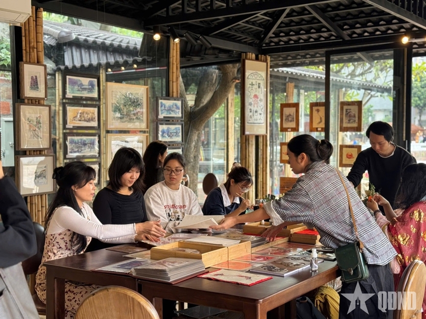 Bên cạnh triển lãm, chuỗi workshop sáng tạo “Chạm vào nghệ thuật, sống cùng di sản” thu hút đông đảo du khách nhờ cách tiếp cận mới mẻ, đưa nghệ thuật đến thật gần với đời sống. Tại đây, du khách được tự tay khám phá, sáng tạo và kết nối với những giá trị văn hóa truyền thống.