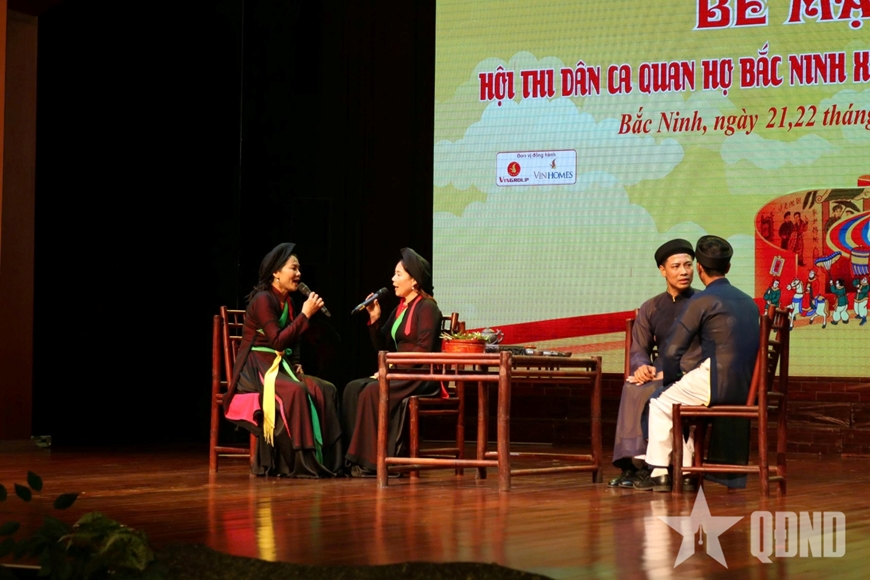Từ sáng sớm, từng tốp liền anh khăn xếp áo the, liền chị áo tứ thân, khăn mỏ quạ đã tề tựu, câu chào hỏi mở đầu bằng những làn điệu quen thuộc. Tiếng hát ngân lên, khi dìu dặt, khi réo rắt, quyện vào nhau như một thứ men tình đặc trưng của vùng Kinh Bắc, khiến người nghe dễ dàng bị cuốn vào, say sưa từ lúc nào không hay.