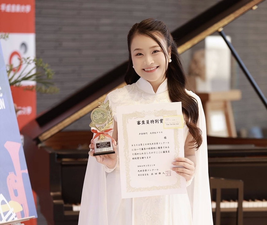Ca sĩ Trần Thị Vân Anh giành giải đặc biệt tại Cuộc thi âm nhạc Kyushu Music Competition lần thứ 28 - năm 2026. Ảnh do nhân vật cung cấp