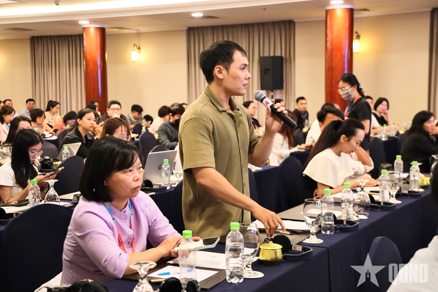| Khách mời đặt câu hỏi cho diễn giả tại chương trình. |