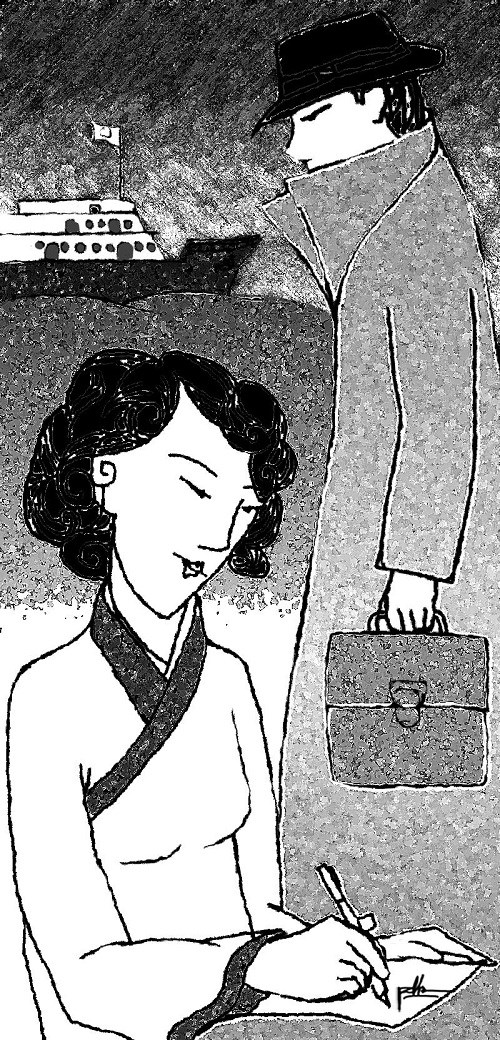 Thực ra từ nửa đêm qua, bà cố ngủ mà không ngủ được. Mắt bà tỉnh khô và đen thẫm trong ánh đèn phòng chói lọi. Bà xem đồng hồ, chiếc đồng hồ óng ánh vàng mà bà chị bạn đồng hương cùng đáp chuyến tàu này tặng bà từ ba năm trước. Bà tự nhủ: “Sáng rồi !”. Và có vẻ lưỡng lự, chưa muốn động đậy gì. Bà thừ ra vài phút. Rồi đưa chiếc điện thoại di động lên tai trái, chiếc tai lấp ló trong các lọn tóc quăn bóng bẩy: “Anh ơi, gần 4 giờ nữa, em tới nhà!”. Ánh mắt bà như đột ngột tắt ngấm. Một tiếng thở dài cố nén không nổi. Tiếng thở dài thoát ra khỏi lồng ngực vẫn căng tròn ở tuổi 40. Bà Rây-kô Uây bỗng hát se sẽ. Chẳng vui, cũng chẳng buồn. Có gì ai oán trong lời hát lơ lớ tiếng Nhật. Bà rửa mặt thật sạch, chải tóc khá lâu, rồi choàng chiếc áo ngoài màu thiên thanh. Trước khi mở cửa, bà nhìn kỹ khuôn mặt chữ điền vẫn xinh xắn của mình.