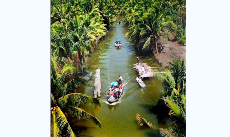 Có lẽ chính dư âm ấy khiến mỗi lần đi qua cầu Rạch Miễu, nhìn về những hàng dừa xanh rì trải dài ven sông, trong tôi lại dâng lên cảm xúc khó tả. Đứng trước vẻ đẹp nguyên sơ của thiên nhiên, con người dường như dễ rung động hơn. Trước khi đặt chân đến xứ dừa, tôi thường tự hỏi, dừa có mặt ở đây từ trước hay con người đã mang dừa đến? Câu hỏi ấy không dễ trả lời, nhưng cứ lẩn khuất trong tâm trí mỗi khi bắt gặp bóng dừa. Có lẽ bởi không chỉ cây dừa làm nên vùng đất trù phú này mà chính con người nơi đây với sự dẻo dai, bền bỉ như thân dừa đã tạo nên nét hào sảng mà gần gũi.