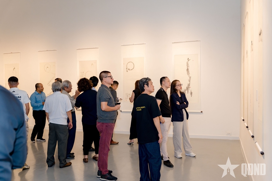 Chỉ bằng mực và nước, các tác phẩm tối giản hình ảnh, dẫn dắt người xem vào thế giới nội tâm. Với ông, thiền họa không nhằm kể chuyện hay mô tả, mà là phản chiếu dòng tâm thức. Những vòng tròn khuyết, nét cong, mảng mực loang… được xem như những khoảnh khắc của hơi thở, nơi ý và tâm hòa lại. Phần còn lại của các tác phẩm là những khoảng trắng trắng, nhưng người xem không rơi vào hư vô, mà mở ra không gian tĩnh lặng vô biên của tâm. Khoảng trống trong tranh ông là phần dành cho sự chiêm nghiệm. Qua đó nhận ra rằng, “cái không” là năng lượng chứ không phải sự vắng mặt. Mực đen, giấy trắng không đối lập mà hòa sinh “sắc tức thị không, không tức thị sắc”.
