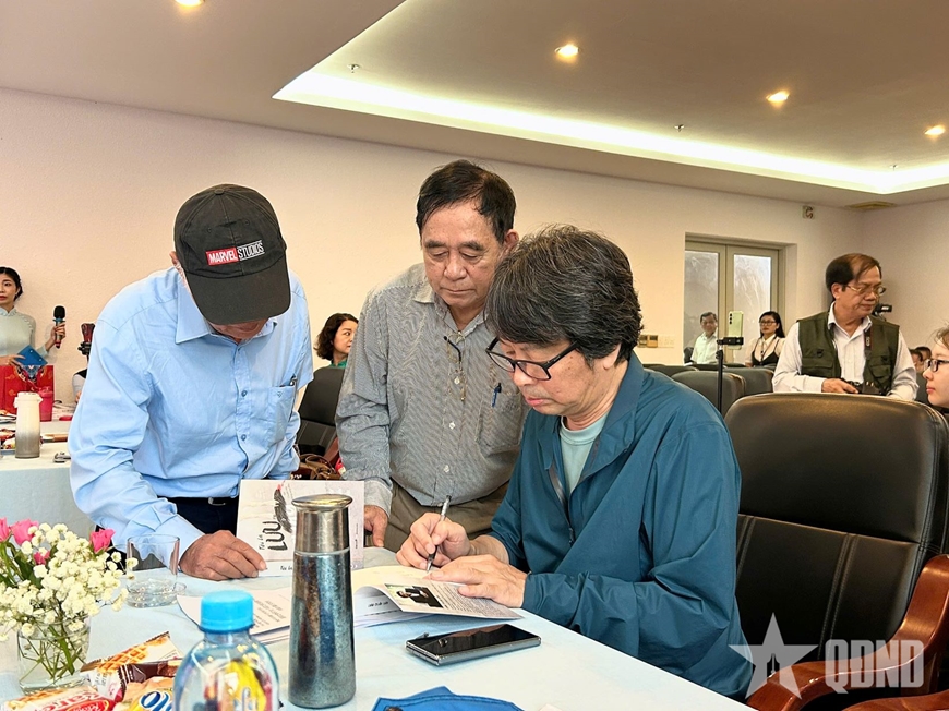 Nhà văn Lưu Chấn Vân ký tặng sách cho độc giả.