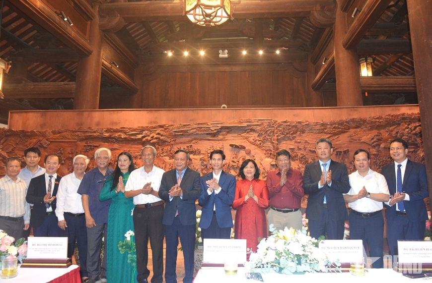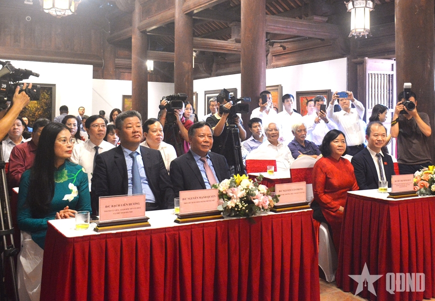 Các đại biểu tham dự Lễ đón nhận tác phẩm tranh gỗ “Vinh quy bái tổ” |
