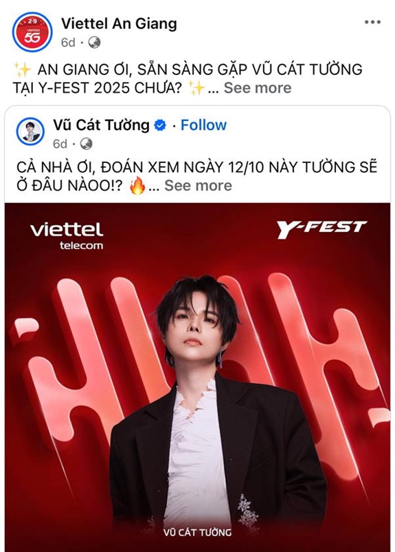 Viettel Y-Fest tại An Giang hứa hẹn sẽ là một đêm không thể bỏ qua, nơi kết nối cảm xúc, bùng nổ năng lượng và khẳng định tinh thần trẻ trung, năng động tại miền Tây sông nước.