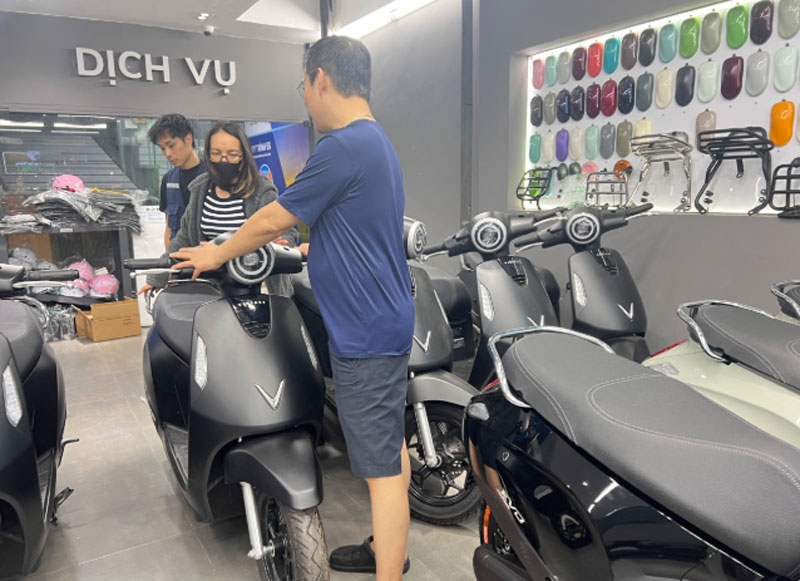 | Người dân tham khảo các mẫu xe điện tại một cửa hàng trên địa bàn phường Ô Chợ Dừa, TP Hà Nội. Ảnh: HỒNG ANH |
