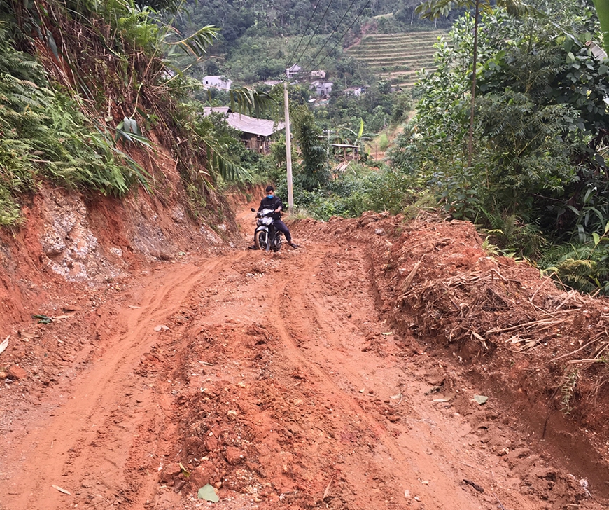 | Dự án đường bê tông từ xóm 1 đi đội 2 thôn Minh Hạ, xã Tân Lập, huyện Bắc Quang phải dừng thi công để chờ vốn. Ảnh: TUỆ ĐĂNG |