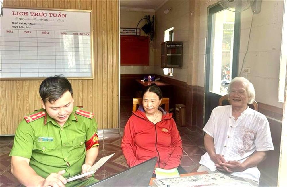 | Hướng dẫn, giải thích cho người cao tuổi về những thủ đoạn lừa đảo qua mạng. Ảnh: Bộ Công an |