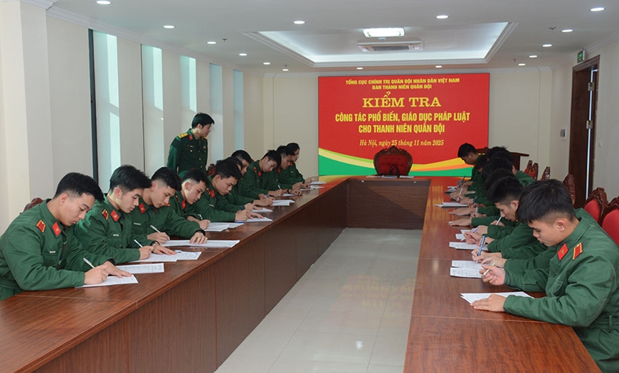 | Ban Thanh niên Quân đội kiểm tra công tác phổ biến, giáo dục pháp luật cho thanh niên Quân đội tại Học viện Hậu cần. |