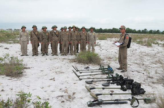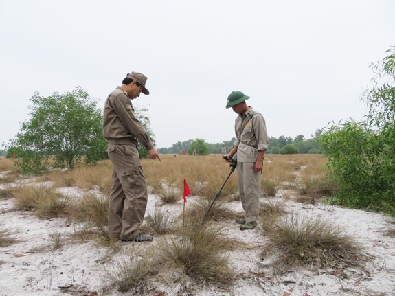 Một đội dò tìm, xử lý BMVN tồn sót sau chiến tranh của VNMAC thực hiện nhiệm vụ tại Quảng Bình. Ảnh: Thành Hữu. |