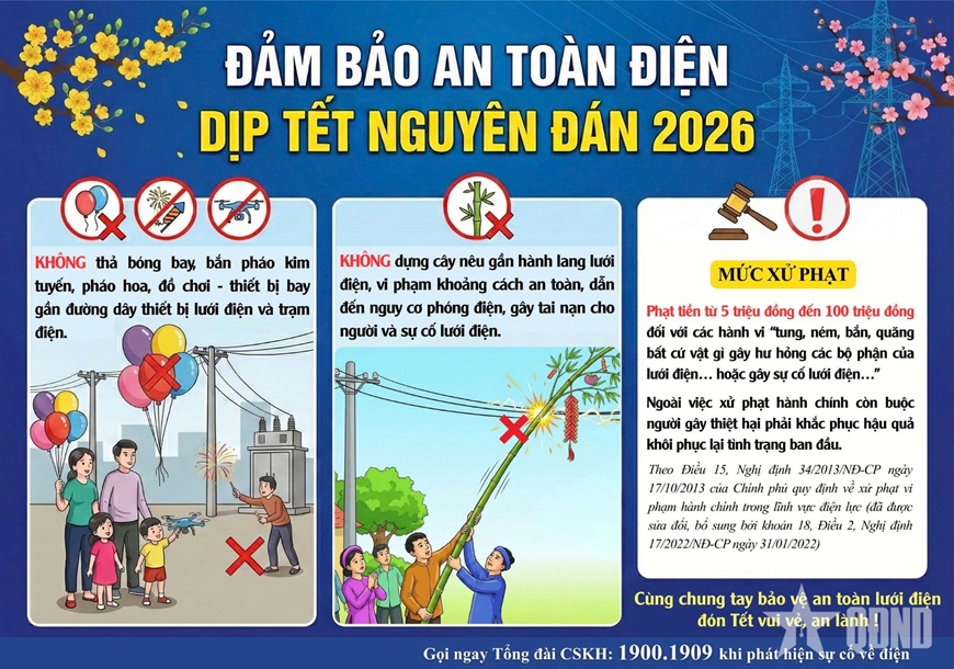 Công ty Điện lực Đà Nẵng khuyến cáo người dân, đặc biệt là các bậc phụ huynh, cần quan tâm, giám sát chặt chẽ trẻ em khi vui chơi trong dịp Tết; không cho trẻ thả bóng bay, thả diều tại khu vực gần đường dây điện, trạm biến áp.