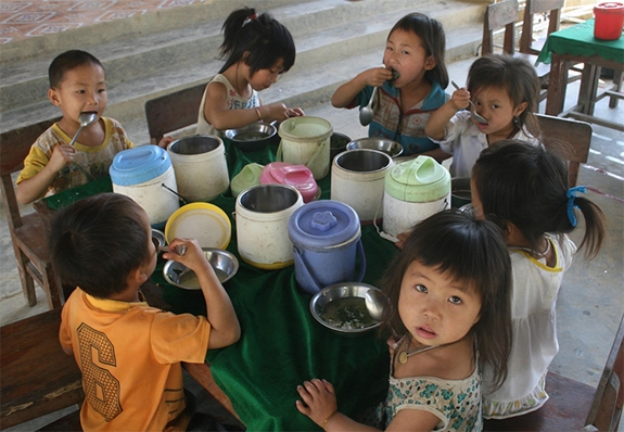 Một bữa cơm trưa của những trẻ em người Mông ở bản Piêng Coọc (xã Mai Sơn, Tương Dương, Nghệ An)