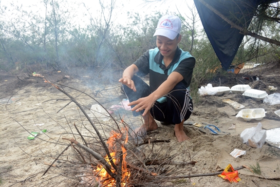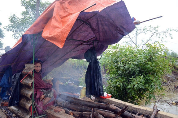 Đồ đạc theo người không có gì ngoài chiếc nón đã long cả vành và chiếc áo mưa giữ ấm, chị Lợi ngồi xoa tay bên đống lửa xua đi cơn gió lạnh đang lùa qua hàng phi lao, nhưng chắc không thể lùa đi cái đói nghèo vừa đi qua cuộc đời chị một cách quá bất ngờ. Chị bảo: “Mấy hôm trước nước cũng lên nhưng chỉ xâm xấp rồi rút ngay. Ai ngờ 2 ngày hôm sau nước lên nhanh quá, lút lên quá đầu, đồ đạc trong nhà trôi sạch, giờ không biết sống ra sao”.