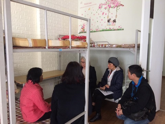 Nạn nhân của tội phạm mua bán người vừa trở về Việt Nam (bên trái, ngoài cùng) được giúp đỡ tại Ngôi nhà Bình yên (Trung tâm Phụ nữ và Phát triển, Hội Liên hiệp Phụ nữ Việt Nam). |