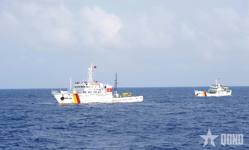 | Các tàu của Chi đội Kiểm ngư số 2 tuần tra trên biển. |