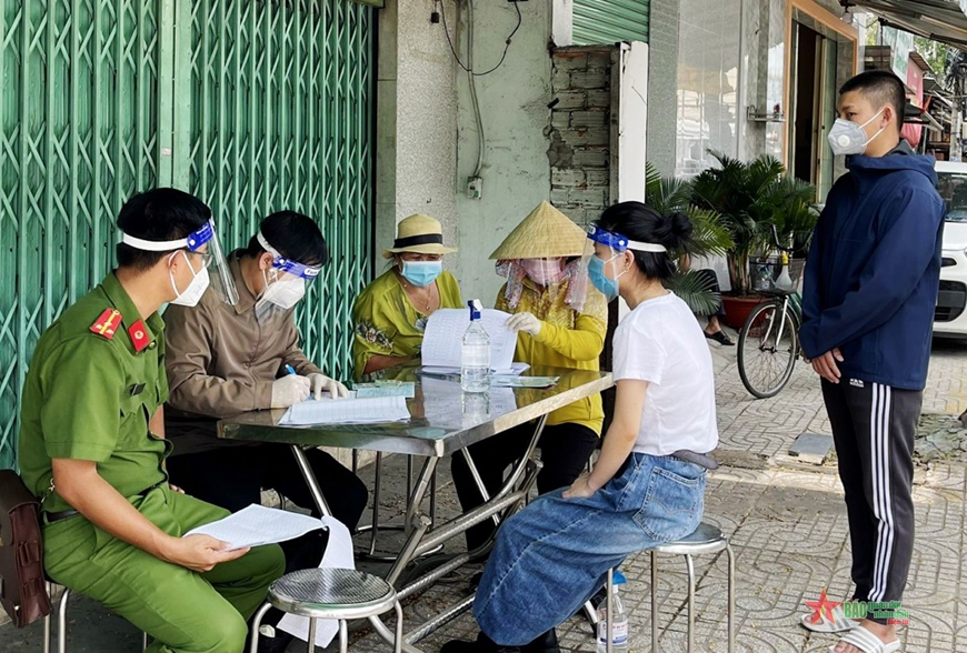 | Cán bộ địa phương thuộc huyện Nhà Bè (TP Hồ Chí Minh) đến tận khu dân cư để chi trả hỗ trợ đợt 3 cho các đối tượng. |