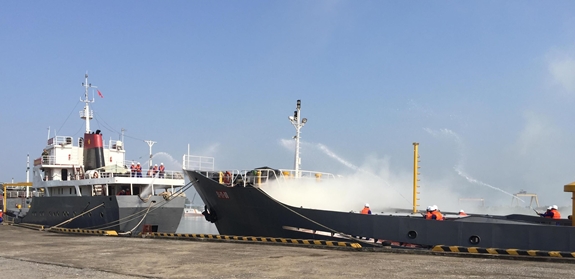 Cán bộ, chiến sĩ Lữ đoàn 649 (Cục Vận tải, Tổng cục Hậu cần) diễn tập xử lý tình huống cháy nổ. |
