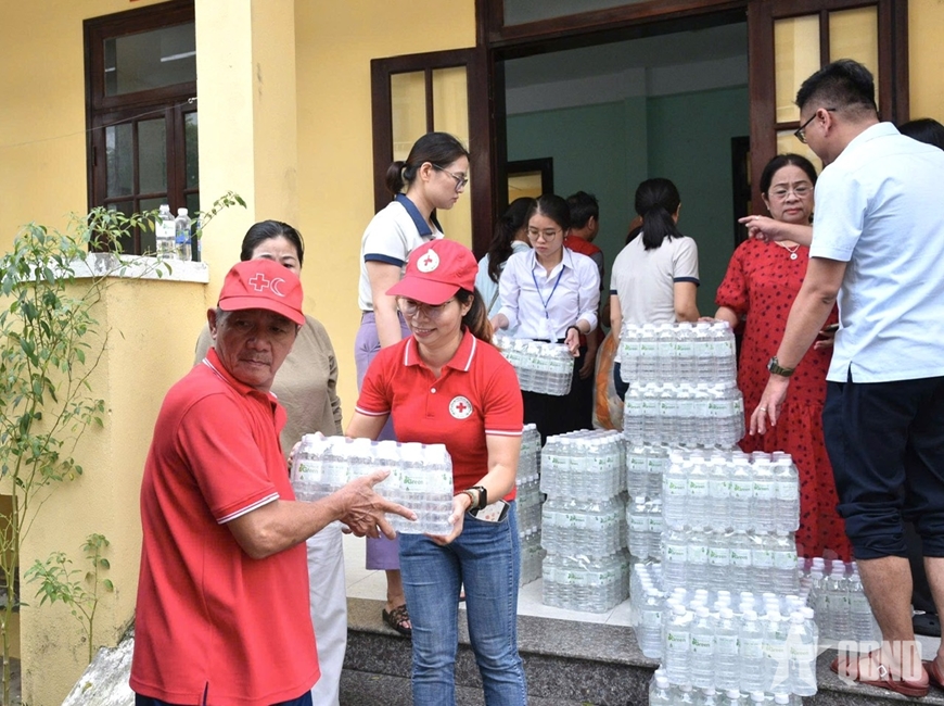 Ngoài hỗ trợ di dời người, tài sản, dầm mình trong mưa để khắc phục sạt lở, thu dọn đống đổ nát, cứu người bị nạn, lực lượng vũ trang thành phố, các ban, ngành, đoàn thể còn chăm lo từng bữa ăn, giấc ngủ của bà con. Không chỉ dừng ở những phần quà vật chất, nhiều đơn vị còn tổ chức thăm hỏi, động viên tinh thần, giúp dọn dẹp nhà cửa, khử khuẩn và sửa chữa điểm trường, trạm y tế sau khi nước rút…
