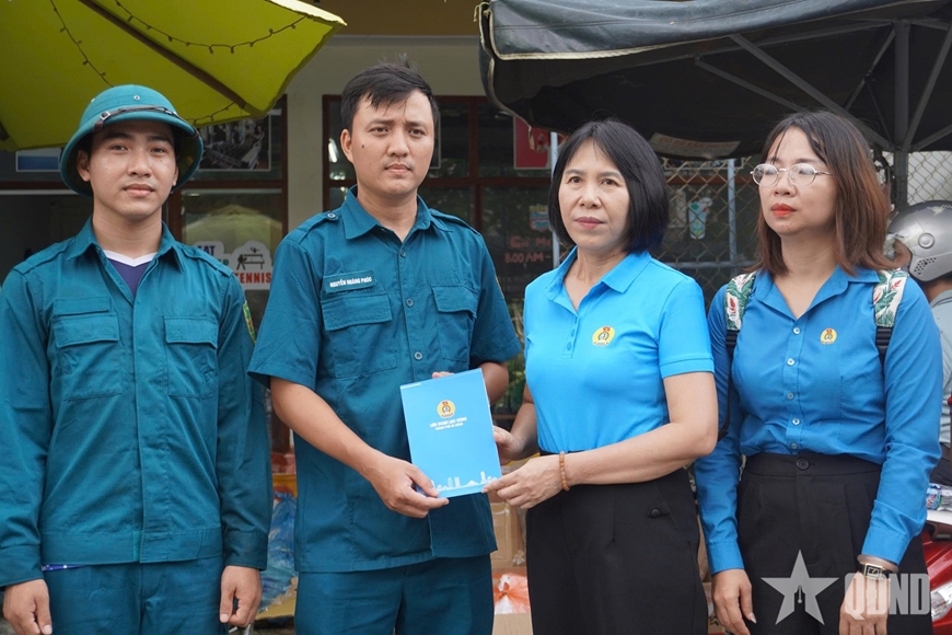 Liên đoàn Lao động TP Đà Nẵng trao tặng quà, động viên tinh thần các lực lượng đang ngày đêm hỗ trợ người dân khắc phục hậu quả mưa lũ.