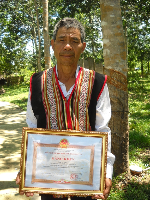 Ông A Nhoi được UBND tỉnh Kon Tum tặng Bằng khen. |