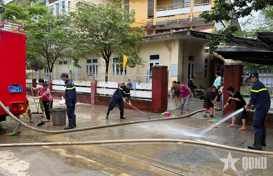 Đến nay, Phòng Cảnh sát cơ động, Phòng Cảnh sát Phòng cháy, chữa cháy và Cứu nạn cứu hộ Công an các xã, phường trên địa bàn thành phố tiếp tục huy động cán bộ, chiến sĩ ra quân tổng dọn vệ sinh môi trường tại các tuyến đường, trường học, bệnh viện, các địa điểm công cộng,… Lực lượng Công an cùng đoàn viên thanh niên, các lực lượng chức năng đã thu gom bùn đất, rác thải, khơi thông hệ thống thoát nước, góp phần làm sạch môi trường, tạo điều kiện để người dân sớm ổn định cuộc sống sau mưa lũ.