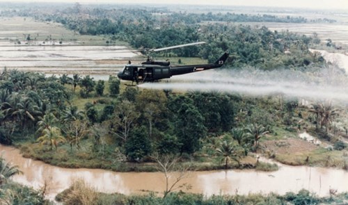 Trực thăng Mỹ rải chất độc da cam/dioxin trong chiến tranh Việt Nam. Ảnh tư liệu.