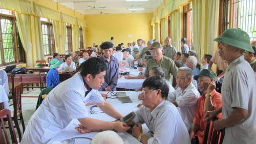 Các y, bác sĩ Bệnh viện Quân y 103 khám bệnh, tư vấn sức khỏe cho các nạn nhân chất độc da cam/dioxin tỉnh Nam Định.