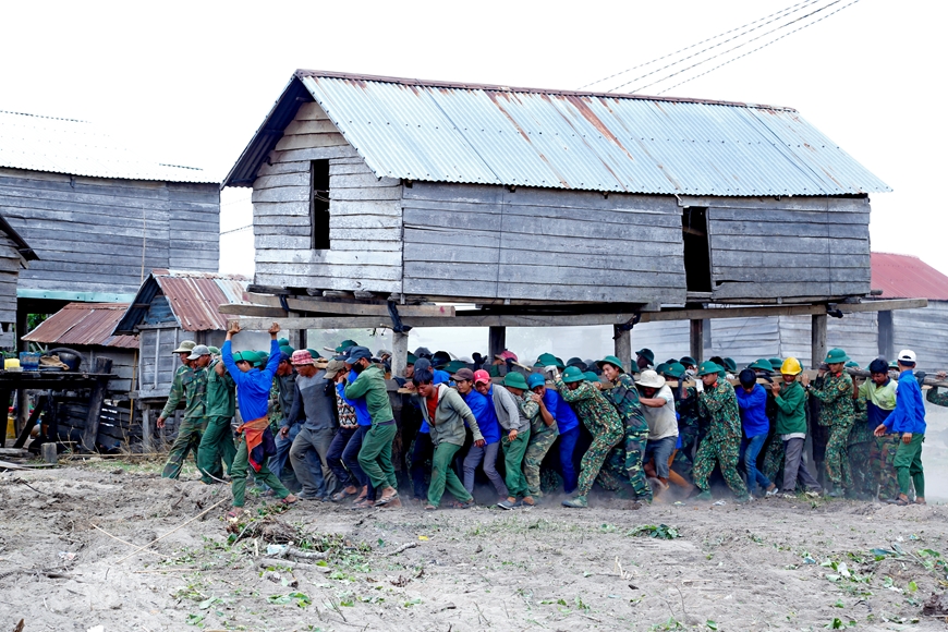 | Cán bộ, chiến sĩ Quân đoàn 3 hỗ trợ tỉnh Gia Lai di dời nhà, quy hoạch lại nhiều làng dân tộc thiểu số, tạo quỹ đất phát triển sản xuất, chăn nuôi (ảnh chụp trước thời điểm dịch Covid-19). |