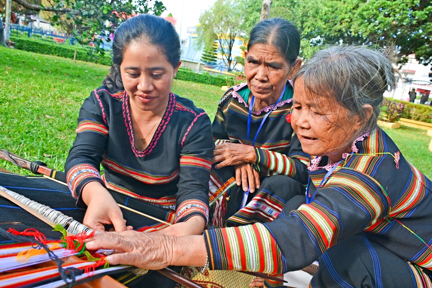 | Nghề dệt thổ cẩm truyền thống của dân tộc Gia Rai, Ba Na ở Gia Lai đang được phục hồi, tạo ra nhiều việc làm và giảm nghèo cho đồng bào (ảnh chụp trước thời điểm dịch Covid-19). |