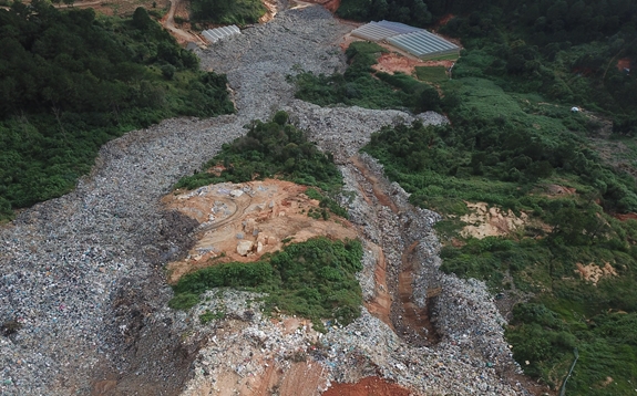 Hiện trường sạt lở tại bãi rác Cam Ly, TP Đà Lạt, tháng 8-2019. |