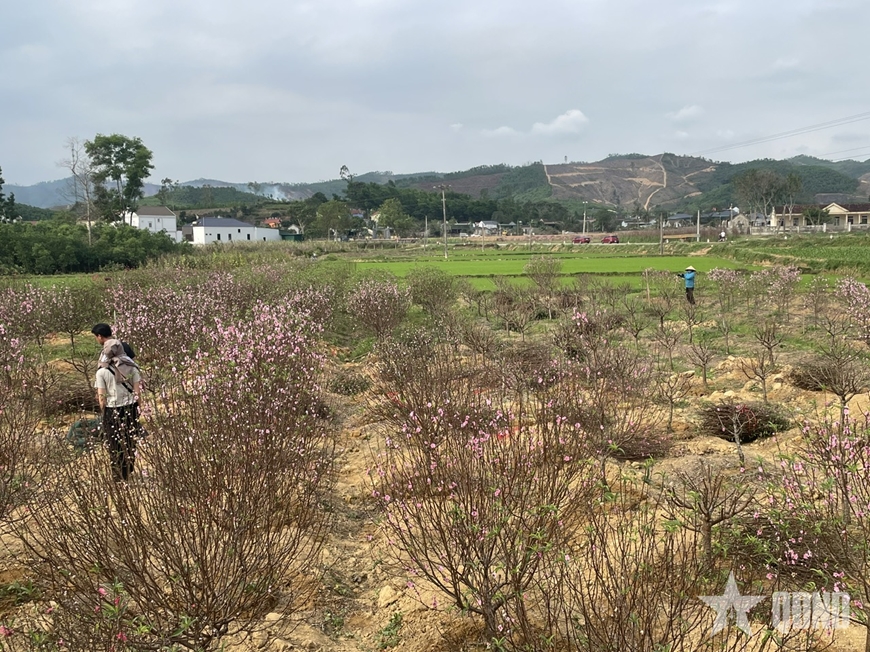Anh Tô Viết Hữu, chủ vườn đào ở xóm 6, xã Vân Du (tỉnh Nghệ An) cho biết, để chuẩn bị cho vụ hoa Tết năm nay, gia đình anh trồng hơn 500 gốc đào. Những năm trước, đào thường bắt đầu hé nụ vào khoảng giữa tháng Chạp. Tuy nhiên, năm nay thời tiết nắng ấm kéo dài khiến đào sinh trưởng nhanh, ra hoa sớm. “Đào nở trước Tết quá lâu thì rất khó giữ hoa đến đúng dịp, nguy cơ thất thu là rất lớn”, anh Tô Viết Hữu lo lắng.