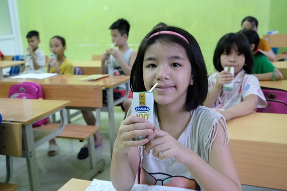 Các em có hoàn cảnh đặc biệt cũng được uống sữa miễn phí. |