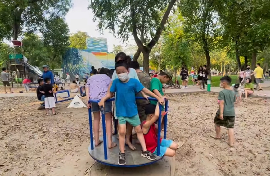 | Trẻ em thích thú được tham gia những hoạt động tại khu vui chơi ngoài trời. Ảnh: AN AN |