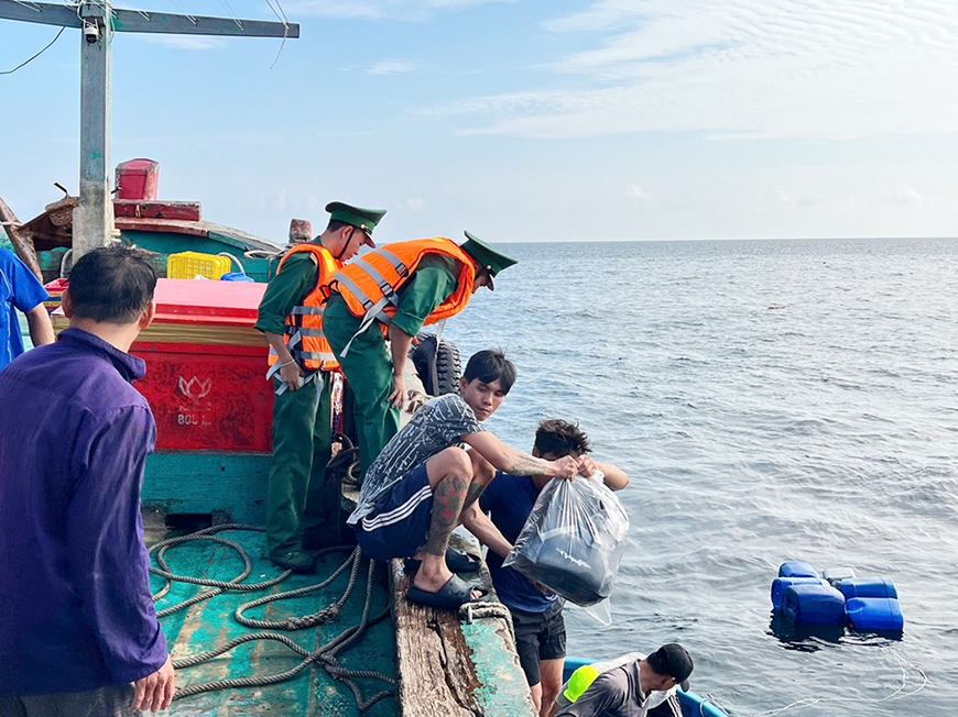 Hằng ngày, cán bộ, chiến sĩ đơn vị thường xuyên tổ chức tuần tra, tuyên truyền để ngư dân chấp hành nghiêm quy định về khai thác, không vi phạm vùng biển nước ngoài. Đồn cũng chủ động cập nhật, thông báo dự báo thời tiết, cảnh báo bão, áp thấp nhiệt đới và vùng thời tiết nguy hiểm. Khi có sự cố, Đồn nhanh chóng tổ chức lực lượng phối hợp với các cơ quan, đơn vị liên quan triển khai công tác cứu hộ-cứu nạn. Từ đầu năm 2025 đến nay, Đồn đã cứu hộ thành công 9 vụ tai nạn, đưa 25 người trở về an toàn. Gần đây nhất, sáng 31-10, đơn vị huy động 5 cán bộ, chiến sĩ cùng ngư dân kịp thời cứu nạn 8 thuyền viên tàu cá BT 93839 TS bị chìm sau va chạm với tàu hàng nước ngoài trên vùng biển Côn Đảo.