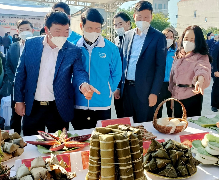 | Các đại biểu tham quan gian trưng bày ẩm thực của đồng bào dân tộc Tày, Nùng. |
