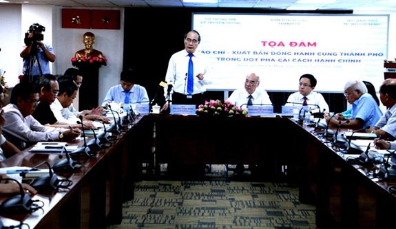 Lãnh đạo TP Hồ Chí Minh gặp gỡ, trao đổi với báo chí. Ảnh: Anh Khoa |