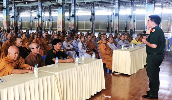 Bộ CHQS tỉnh còn tăng cường phối hợp với Sở Nội vụ tổ chức phổ biến kiến thức quốc phòng, an ninh (QPAN) cho chức sắc, chức việc, nhà tu hành với những cách làm hiệu quả. Nhiều nội dung được giới thiệu ngay tại nhà chùa, nhà thờ, tu viện… được đại diện các dòng tu, ban hành giáo các giáo xứ, giáo họ và ban chấp sự, ban trị sự các chi hội, hội thánh trên địa bàn tỉnh ủng hộ. Nhờ công tác tuyên truyền, phổ biến kiến thức pháp luật về tôn giáo, tín ngưỡng và chủ quyền biển, đảo của Tổ quốc, bà con thêm hiểu rõ trách nhiệm của mình trong thực hiện nhiệm vụ QPAN, tích cực động viên con em tham gia thực hiện nghĩa vụ quân sự, không tin lời xúi giục, kích động của kẻ xấu, góp phần bảo vệ Tổ quốc, xây dựng quê hương.