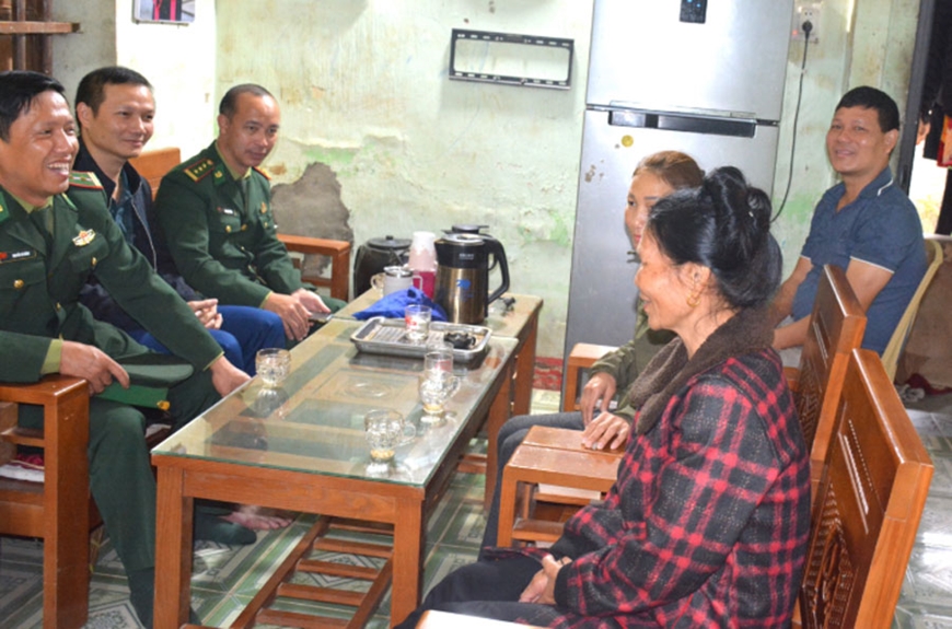 | Đội công tác Đồn Biên phòng Cửa khẩu quốc tế Nậm Cắn thăm gia đình bà La Thị Loan. |