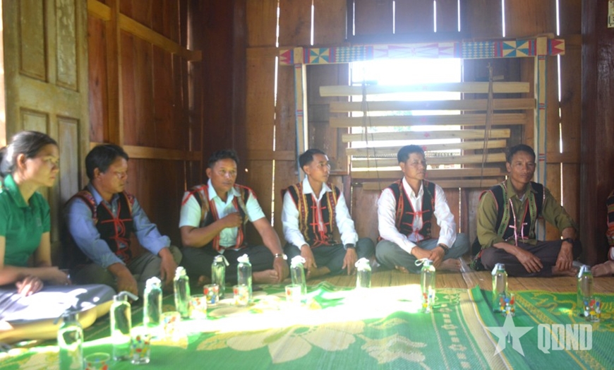 Các hộ dân thôn K2, xã Vĩnh Sơn, tỉnh Gia Lai tại nhà rông. |