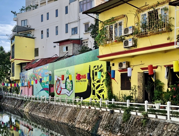 Bước chân tới tuyến đường ven hồ Trúc Bạch (phường Trúc Bạch, quận Ba Đình), chúng tôi không khỏi ngỡ ngàng trước sự "thay da đổi thịt" của nơi đây. Tuyến đường mang một diện mạo mới với hàng trăm chiếc đèn lồng, cây xanh và hoa ven đường, hàng chục bức bích họa với chủ đề Hà Nội xưa cùng thông điệp bảo vệ môi trường. Trước vẻ đẹp của cảnh quan, không ai nghĩ tuyến đường này trước đây từng chịu cảnh ô nhiễm do rác thải tập kết bừa bãi; dưới hồ, nước đen ngòm, tù đọng rác cùng mùi hôi thối bốc lên, gây ảnh hưởng tới cuộc sống của người dân sinh sống xung quanh.
