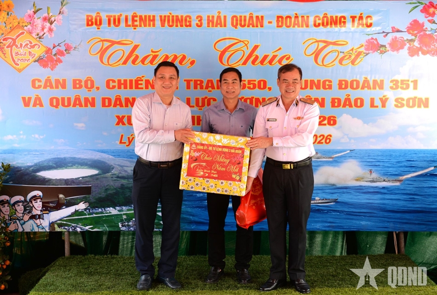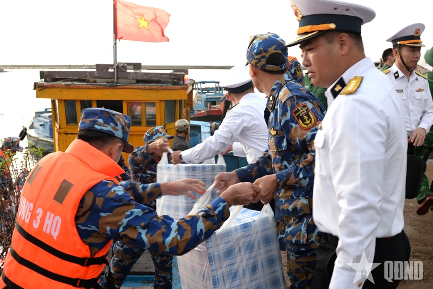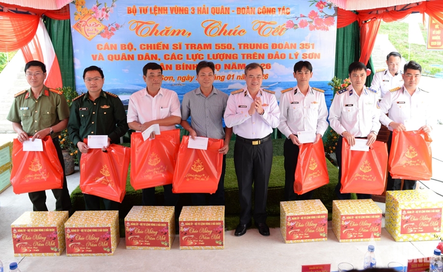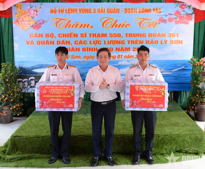 Vượt qua hàng trăm hải lý, đoàn công tác Vùng 3 Hải quân cùng đại diện các cơ quan, đơn vị, địa phương, doanh nghiệp, phóng viên, biên tập viên các cơ quan báo chí Trung ương, Quân đội và địa phương đã chuyển hàng, quà Tết đến cán bộ, chiến sĩ, nhân dân đang công tác, sinh sống trên đặc khu Lý Sơn (tỉnh Quảng Ngãi).