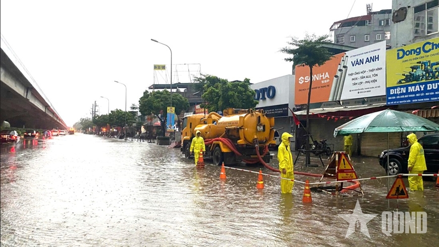 Trước tình hình trên, Công ty TNHH Một thành viên Thoát nước Hà Nội đã chủ động bố trí lực lượng, phương tiện ứng trực tại các điểm trọng yếu để xử lý khi xảy ra úng ngập. Đồng thời, đơn vị đã vận hành tối đa công suất các trạm bơm đầu mối trên hệ thống như: Trạm bơm Yên Sở (vận hành 20/20 bơm); Trạm bơm Cầu Bươu; Trạm bơm Đồng Bông 1, 2; Trạm bơm Cổ Nhuế; Trạm bơm Đa Sỹ... nhằm hạ mực nước trên hệ thống thoát nước. Đơn vị cũng triển khai công tác ứng trực, thoát nước, vớt rác tại ga thu trên toàn địa bàn quản lý, mở cửa phai của các hồ điều hòa, bảo đảm an toàn giao thông tại các khu vực trũng thấp.