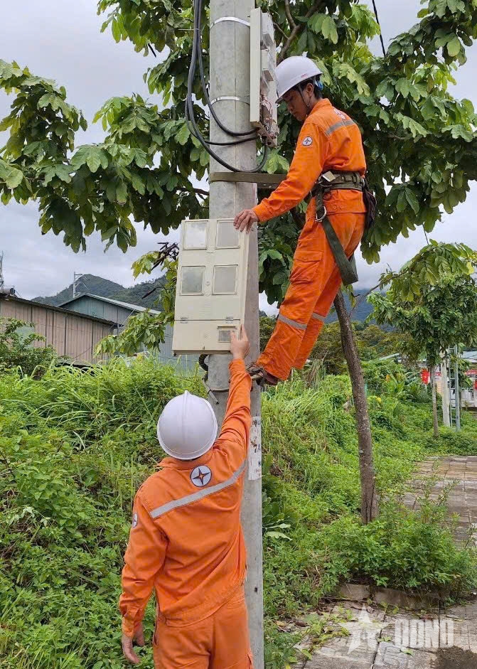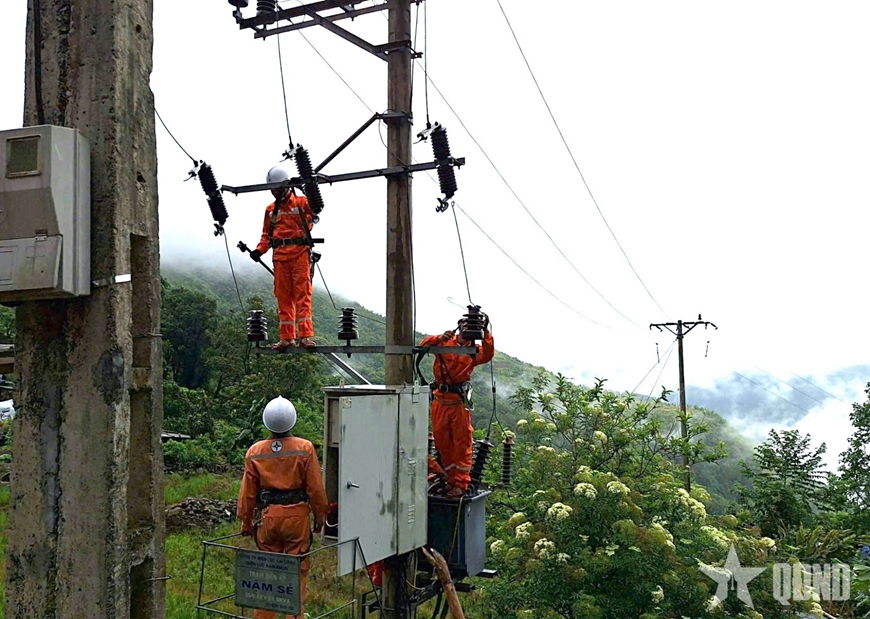 Công nhân Đội quản lý điện lực khu vực Nậm Hàng sửa chữa điện cho bà con tổ dân phố Pa Kéo, xã Nậm Hàng. |
