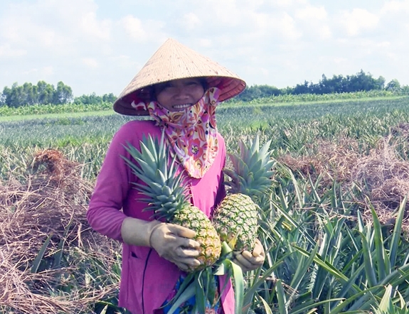 | Người dân ấp Phương Thạnh, xã Phương Bình (Phụng Hiệp, Hậu Giang) thu hoạch khóm. |